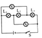 25.如上图所示,电源电压不变,但开关S闭合后,V1、V2表的示数分别为4V、6V,当将灯L1、L2的位置互换后,两电压表的示数不变。求灯L1、L2、L3两端及电源电压各是多少?