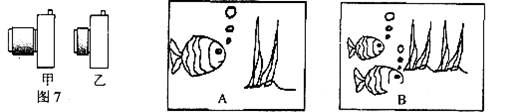 23.(2分)如图7甲、乙是镜头焦距不同的两架相机,它们所用的底片规格是相同的,分别用它们的同一位置拍摄同一景物。我们可以判定在图中,照片 是用相机甲拍摄的,照片 是用乙拍摄的。