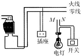 (3)下图所示,为家庭电路的示意图,请将电灯的两根引出线M、N正确接入电路中。(1分)