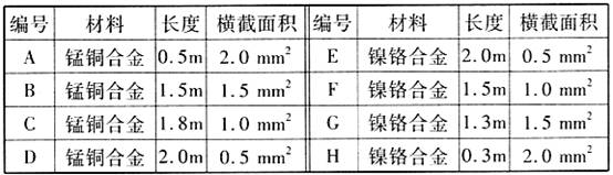 (2)现有几根锰铜合金丝和镍铬合金丝,其规格如下表所示。在不剪断合金丝的前提下,如果要比较锰铜合金丝和镍铬合金丝这两种材料的导电性能,实验中应选择编号