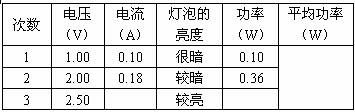 (1)小丽和小明两位同学按正确的方法连接电路后,用电流表测量通过小灯泡的电流,用电压表测量小灯泡两端的电压,得到的数据填入下面小丽同学设计的表格中。其中第三次实验中,电流表示数如下图所示。第三次实验中电流表示数是____A,灯泡功率是______