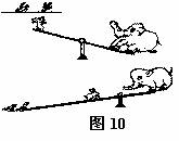 24、图10所描述的是小兔和大象玩跷跷板的漫画,小兔发现要输给大象,于是向空中的小鸟求助,两只聪明的小鸟帮助小兔赢了大象。这幅漫画展示的物理原理是