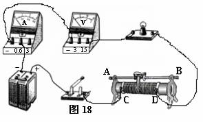 31、(3分)某同学在做“伏安法”测电阻的实验时,连接了如图18所示电路,请指出他所连接实验电路中的三处不同的错误,并说明改正方法。