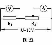 34、如图21所示电路中,电源电压为12V不变,R2的阻值变化范围是0~20Ω。