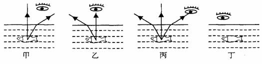 C.只有丙图能看到鱼 D.四个图都能看到鱼