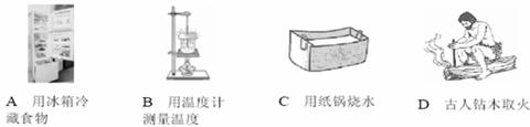 14.在如图所示的四个过程中,食物、温度计、水和圆木的内能都会发生改变,其中利用做功的方式来改变物体内能的是( )