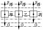 1、材料不同的甲、乙、丙三个物体的体积均为10-3m3,浸没在水中它的受力情况如图所示,那么下沉的物体是______,此过程中,该物体受到的浮力为_______N,三个物体最后处于漂浮状态的物体是_______。![]()