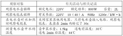 30.在探究“家用电器”的综合实践活动中,小明与同学合作,在爸爸的协助下,以家里的电水壶为观察、研究对象,记录了如下表中的有关数据。