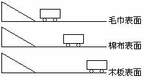 7、如图所示,在水平桌面上铺粗糙程度不同的物体,让小车自斜面顶端同一高度、从静止开始滑下.小车在不同表面运动的距离见下表.通过探究,我们可以反驳如下说法中的哪条