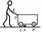 23、列车上有出售食品的手推车,如图所示.若货物均匀摆在车内,当后轮遇到障碍物A时,售货员会向上提扶把,请在图中画出此时售货员最小力的示意图和这个力的力臂.