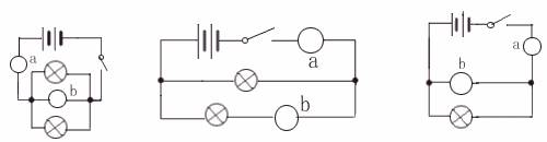 24.在下图所示的电路中a、 b 表示电表, 试在图中根据电路的要求, 标出哪个是电流表,哪个是电压表。