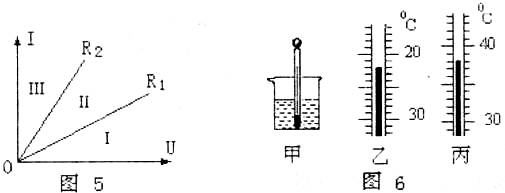 16.小英同学按图6(甲)所示的方法测量液体温度,其错误__________________________;乙、丙两支温度计分别测量的是冰和水的温度,则冰的温度是________,水的温度是_______。