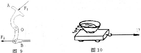 21.如图9是汽车刹车踏板的示意图,在图中画出动力F1、阻力F2的力臂。