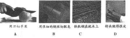9.如下图所示的四种关于固体压强的现象中,其中一种与其他三种现象不同的是