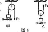 6.两个完全相同的滑轮,其重力均为20N,分别用图4甲乙两种方式,将重400N的物体以相同的速度匀速提高10米,不计摩擦和绳重则下列判断正确的是: