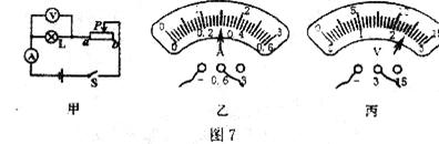 10.图7甲是伏安法测小灯泡电阻、功率的实验电路图,小灯泡正常工作时,两电表的示数如图乙、丙所示,则下列说法中正确的是
