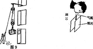 13.如图10所示,嘴巴对着两张竖直放置的纸吹气,两张纸会靠拢,原因是: