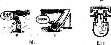 15.从物理学的角度看,图11的两幅漫画都说明 可以改变物体的内能,图乙中的小朋友从滑梯上滑下的过程中他的重力势能将 。