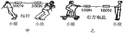 ①第二次(乙图)小欣拉绳子的力_____________(填“大于”、“小于”或“等于”)小丽拉绳子的力。
