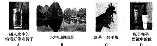 3.如下图所示的四种现象中,由于光的直线传播形成的是 ( )