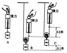 14.某同学研究动滑轮的使用特点,他每次都匀速提起钩码,研究过程如图所示。请仔细观察图中的操作和测量结果(不计滑轮的重力),然后归纳得出初步结论。