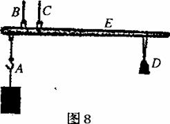 5.如图8,杆秤是民间的一种测量工具。使用时,将待测物体挂在秤钩A上,用手拎住秤钮B或C(相当于支点),秤砣D在秤杆E上移动,当杆秤水平平衡时就可以在秤杆上读出读数。
