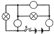 21.如图所示电路中有两个小灯,请在图中适当位置,分别填人A或V的符号,要求开关闭合时两灯均能发光,且所有电表的示数均不为零。(3分)