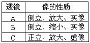 3、有A、B、C三只凸透镜,将这三块凸透镜放在光具座上做成像实验,当保持各透镜到烛焰的距离相等的条件时,得到的实验记录如表,由此可知A、B、C三只凸透镜的焦距关系为( )