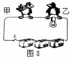 17.如图8当开关S闭合时两只小鸟中可能触电的是 (选填“甲或乙”)