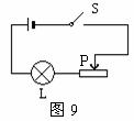 19.如图9所示的电路中,电源电压保持不变,闭合开关S后,标有“6.3V 1W”的小灯泡L恰好正常发光;若把灯泡L换成标有“6.3V 2W”字样的小灯泡L1,要使L1也能正常发光,应将滑动变阻器的滑片P (选填“向左移动”、“向右移动”或“不动”)。