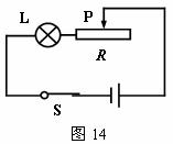 (2)为了检验猜想是否正确,小刚设计了如图13甲所示的电路图,其中电源为两节干电池,电阻R为10Ω,变阻器R′ 标有“20Ω 1A”字样。