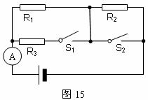 26.如图15所示电源电压保持不变,R1=8Ω,R2= 12Ω。