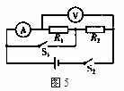 12、如图5所示电路,电源电压不变,当开关S2闭合、S1断开时,电流表示数为0.3A,电压表示数为9V;若将两表互换位置,并同时闭合S1和S2时,电流表示数为0.5A.则下列说法中错误的是