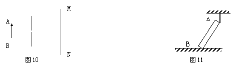 21、如图10所示,小孔前有一物体AB,请画出AB经过小孔成像的光路图,并在光屏MN