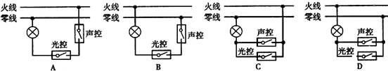 6.为了节能、方便,有的楼道照明灯使用声、光控开关,其原理是:光控开关在黑暗时闭合,声控开关在有声音时闭合。下面能实现只在黑暗且有声音时灯才亮的电路原理图是 ( )