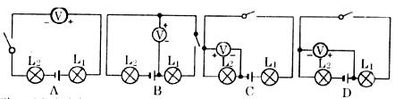 5.如图所示电路,当开关S闭合后,能用电压表测出灯L2两端电压的电路图是