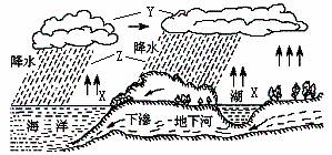 2、水资源是可再生资源,在水循环中,不断地在大气和地表之间运动,如图所示,其中X、Y、Z表示的是水循环中的三个阶段,下列说法中正确的是( )