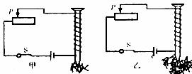 (2)连接好电路,使变阻器连入电路的阻值较大,闭合开关,观察到图甲所示的情景;接着,移动变阻器滑片,使其连入电路的阻值变小,观察到图乙所示的情景.比较图甲和乙,可知 图中的电流较小,从而发现,通过电磁铁的电流越 ,磁性越强.