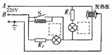 6、电饭锅的原理如图10所示,煮饭时开关S是闭合的,红色指示灯亮;饭熟后(当时的温度大约为103℃)保温时开关S自动断开,黄灯亮。