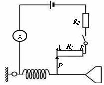 2、为锻炼身体,小明利用所学物理知识设计了一个电子拉力计,图12是原理图。硬质弹簧右端和金属滑片P固定在一起(弹簧的电阻不计,P与R1间的摩擦不计)。定值电阻R0=5Ω,a、b是一根长为5cm的均匀电阻丝,阻值R1=25Ω,电源电压U=3V,电流表的量程为 O-0.6A。
