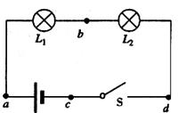 、b两点时,两灯都不亮;接触b、d两点时,两灯都不亮;接触c、d两点时,两灯都亮。则 ( )