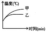 9.小明用同样的酒精灯给质量相等的甲、乙两种物质加热时,根据测量结果描绘了温度一时间图像,如下图所示。由图像可知,两种物质相比较: 物质的比热容较大。