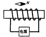 22.在通电螺线管附近有个小磁针,小磁针静止时N极所指的方向如图所示,请在图中标出通电螺线管的N、S极及电源的正、负极。