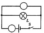 23.在下图所示电路中,填上适当的电流表和电压表符号,当开关S闭合时,灯泡正常发光,同时标出通过灯泡的电流方向。