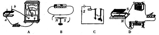 26.如下图所示是有关电与磁实验的装置图,请说出每个装置图是用来研究什么问题的。(8分)