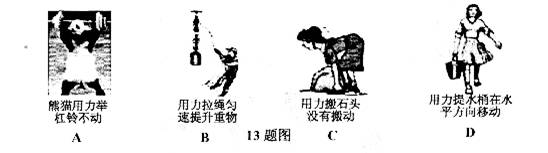 13.如图所示的四个情景,图下文字所描述的过程中,所用的力对物体做功的是 ( )