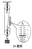25、(9分)如图所示是小明同学测滑轮组机械效率的实验装置图.他在2s内做了2.4J的有用功使重物匀速上升了0.4m,不计绳重及摩擦.请你回答: