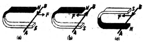 ②(a)(c)实验表明,通电导体在磁场中受力方向与磁场方向有关;
