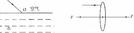 1.在左图画出光线从空气斜射到水面的光路图;在右图画出光线通过透镜后的