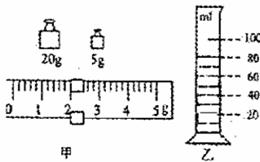 (1)用调节好的天平称一个物体的质量,当把物体放到天平左盘时,右盘中的砝码和游码所处的位置如图甲所示,天平平衡,请你将数据记录在下表内。